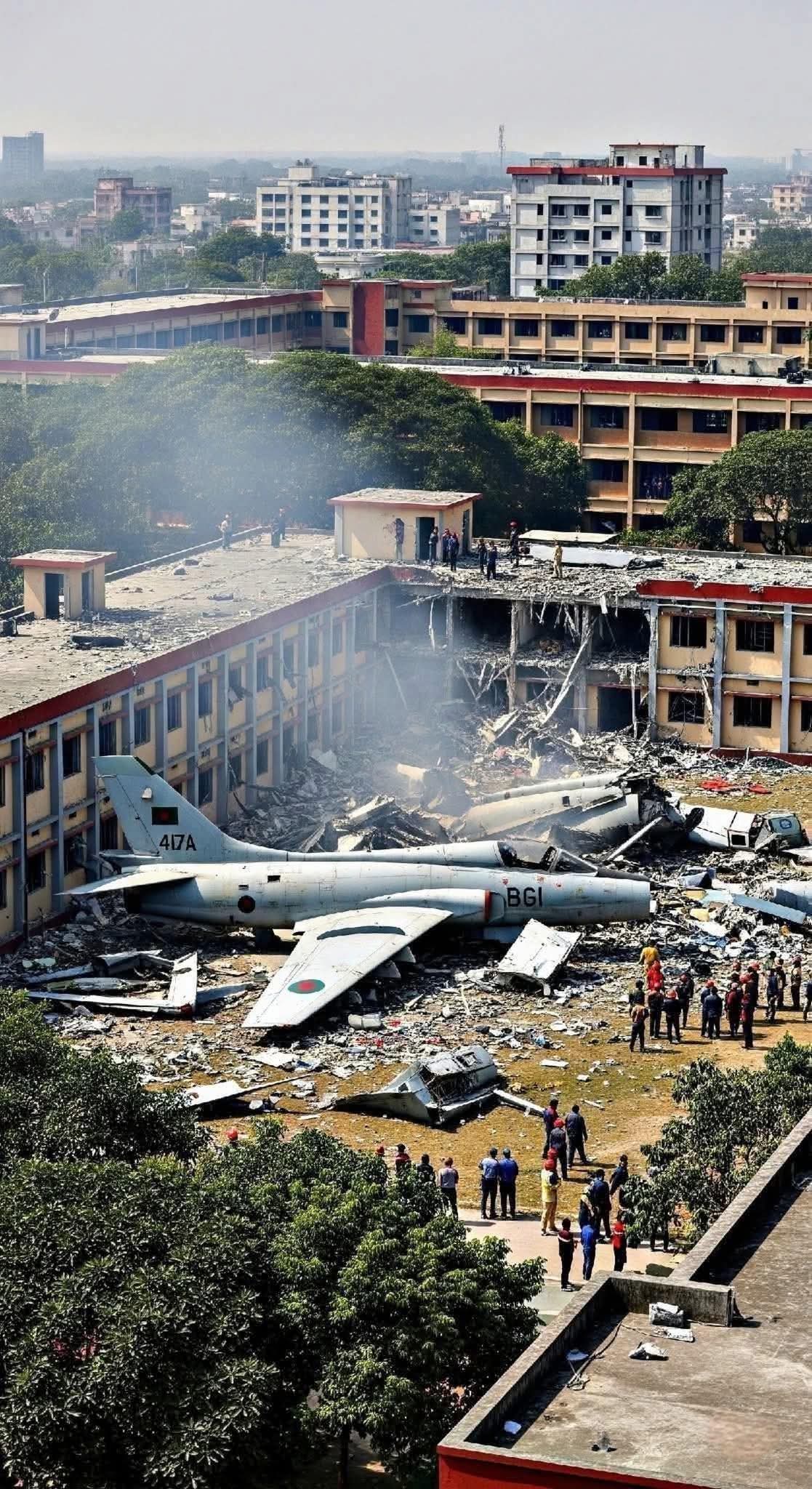 রাজধানীর উত্তরার দিয়াবাড়ি এলাকায় মাইলস্টোন স্কুল এন্ড কলেজে বাংলাদেশ বিমানবাহিনীর একটি এফ-৭ যুদ্ধবিমান বিধ্বস্তের ঘটনা ঘটেছে। এই ঘটনায় এখন পর্যন্ত ১৯ জন মারা গেছে বলে খবর পাওয়া গেছে। আহত হয়েছেন শিক্ষার্থীসহ শতাধিক মানুষ।