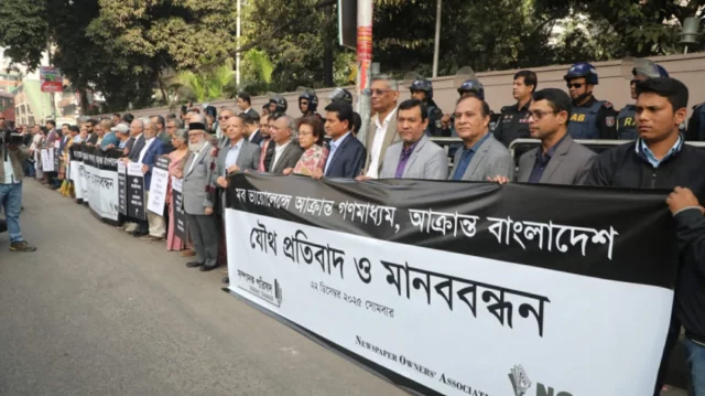 সোমবার (২২ ডিসেম্বর) সকালে রাজধানীর প্যান প্যাসিফিক সোনারগাঁও হোটেলে ‘মব ভায়োলেন্সে আক্রান্ত বাংলাদেশ’ শীর্ষক এক প্রতিবাদ সভায় এই ঘোষণা দেওয়া হয়। সম্পাদক পরিষদ ও নোয়াব যৌথভাবে এই সভার আয়োজন করে। প্রতিবাদ সভা শেষে হোটেলের সামনের সড়কে এক মানববন্ধন কর্মসূচিও পালন করা হয়।
