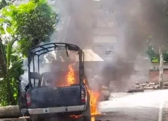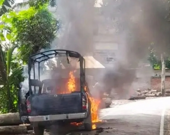 গোপালগঞ্জে পুলিশের গাড়িতে আগুন