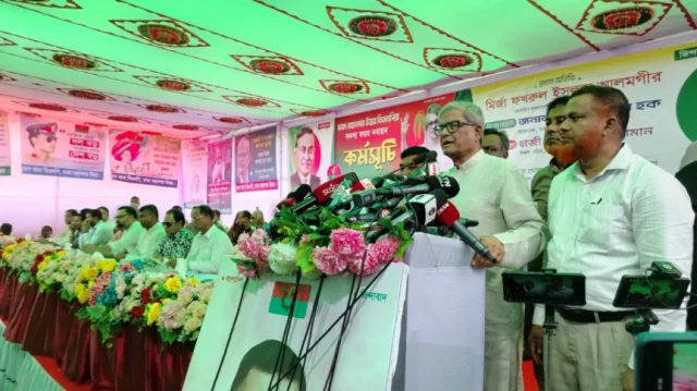 মির্জা ফখরুল বলেন, ‘আমরা রাজনৈতিক দল আমাদের কাজ কী? জনগণের জন্য কাজ করা। আমাদের কাজ হচ্ছে জনগণ যেন শান্তিতে থাকে, জনগণ যেন শিক্ষা ব্যবস্থা পায়, তাদের ছেলেমেয়েরা যেন লেখাপড়া করতে পারে, তারা যেন চিকিৎসা পায়, পাস করে বেরুলে চাকরি পায় এবং একটা উন্নত জীবনযাপন করতে পারে—সেটাই আমাদের লক্ষ্য।’