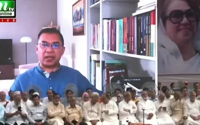রাজধানীর নয়াপল্টনে বিএনপির সমাবেশে দলের ভারপ্রাপ্ত চেয়ারম্যান তারেক রহমান আজ মঙ্গলবার ভার্চুয়ালি বক্তব্য দেন। বিএনপির ভারপ্রাপ্ত চেয়ারম্যান তারেক রহমান বলেছেন, বাংলাদেশে মাফিয়া শাসন চালু করা হয়েছিল। দেশে-বিদেশে পলাতক স্বৈরাচার বিনাভোটের সরকারে পরিচিত হয়ে উঠেছিল। সে ...