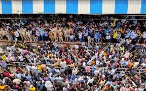 ন্যায়বিচারের দাবিতে বিক্ষোভকারীরা মঙ্গলবার থানে জেলার বলদাপুর রেলওয়ে স্টেশনে কয়েক ঘণ্টা রেললাইন অবরুদ্ধ করে রাখেনছবি: এএনআই ভারতে চার বছর বয়সী দুই শিশু শিক্ষার্থীকে যৌন হয়রানির অভিযোগে মুম্বাইয়ের কাছের বলদাপুর শহরে আজ বুধবার দ্বিতীয় দিনের মতো ...