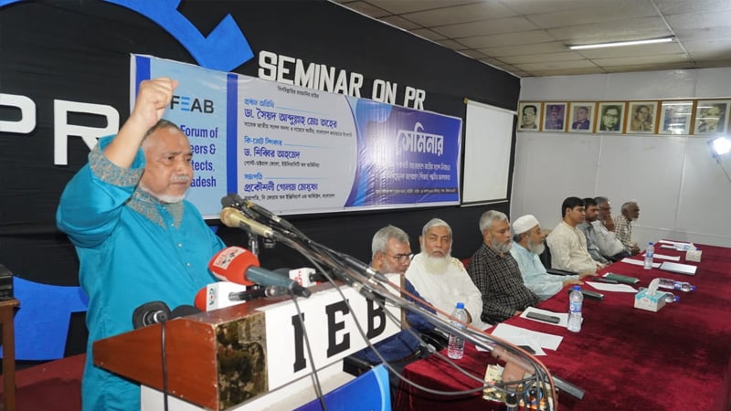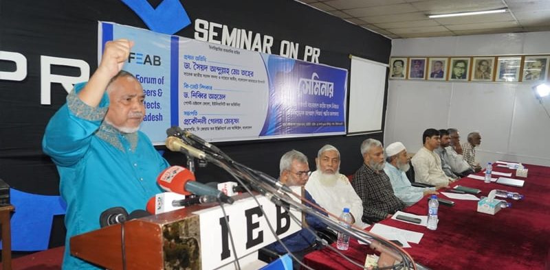 রোববার রাজধানীর রমনার ইঞ্জিনিয়ার্স ইনস্টিটিউটে ‘অভ্যুত্থান পরবর্তী বাংলাদেশে জাতীয় সংসদ নির্বাচনে পিআর পদ্ধতির আবশ্যকতা’ শীর্ষক সেমিনারে এসব কথা বলেছেন ডা. তাহের। জামায়াতপন্থি সংগঠন দি ফোরাম অব ইঞ্জিনিয়ার্স অ্যান্ড আর্কিটেক্টস, বাংলাদেশ (এফইএবি) এ সেমিনার আয়োজন করে।