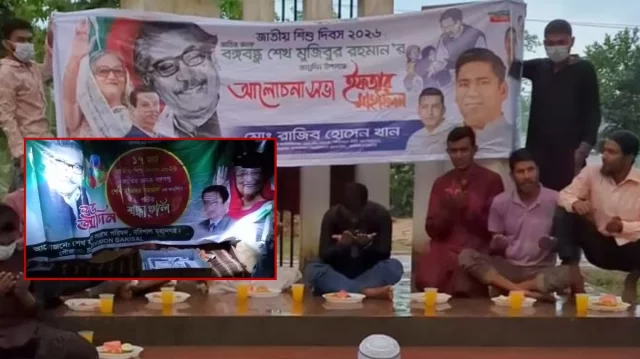 ভিডিওতে দেখা যায়, কোনো এক শিক্ষাপ্রতিষ্ঠানের ভেতরে শহীদ মিনারে ব্যানার টাঙিয়ে বঙ্গবন্ধুর জন্মদিন উপলক্ষে ইফতার সামনে নিয়ে দোয়া মোনাজাত করছেন নিষিদ্ধ সংগঠনের নেতাকর্মীরা। এছাড়া সেখানে স্লোগানও দেন তারা। জন্মদিন উদযাপনের ওই ভিডিও কাউনিয়া থানা এলাকার বলে জানা গেছে।