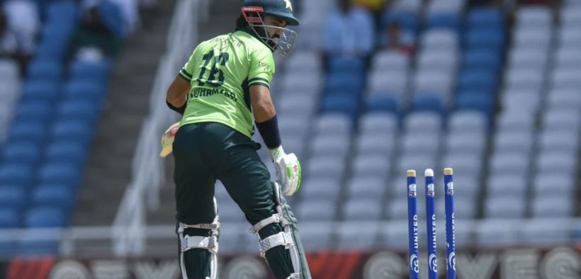 বাবর আজম ৯ রানে এলবিডব্লিউ হন সিলসের শিকার হয়ে। কিছুটা লড়াই করেন সালমান আগা, ৪৯ বলে ৩০ রান করেন তিনি। কিন্তু হাসান নওয়াজ (১৩) গুদাকেশ মোতির বলে স্টাম্পড হন এবং হোসেন তালাত (১) বোল্ড হন রস্টন চেজের বলে। শেষ ব্যাটার আবরার আহমেদ রান আউট হয়ে শূন্য রানে ফেরেন।